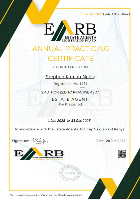 A registered Estate Agent and member of the Institution of Surveyors of Kenya (ISK). Experienced in surveying for KPLC and the Rural Electrification Authority.